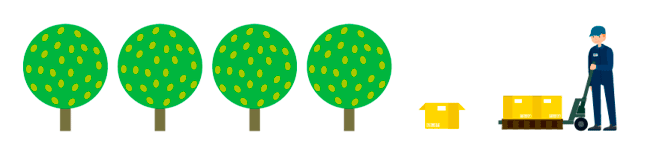 The olives are placed in bins with a capacity of 550-600 kg and transported by trucks to the receiving yard of the industrial plant.